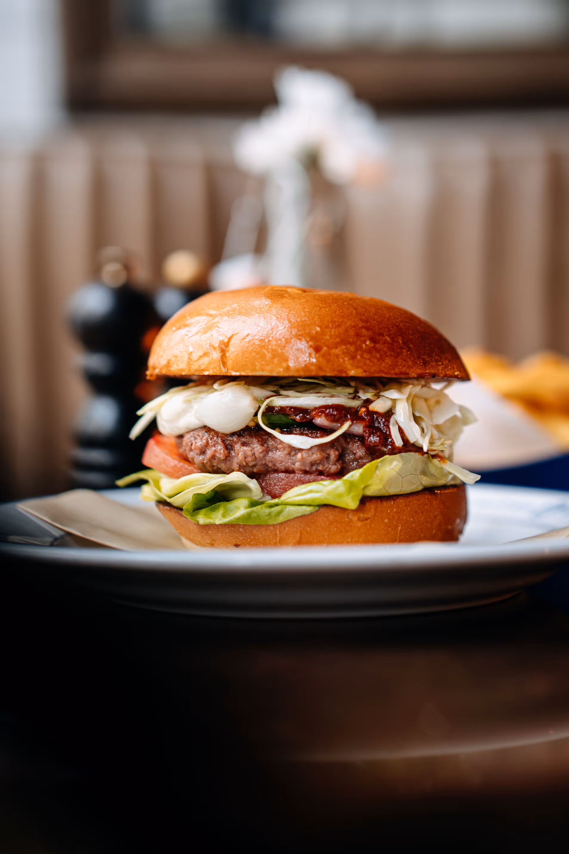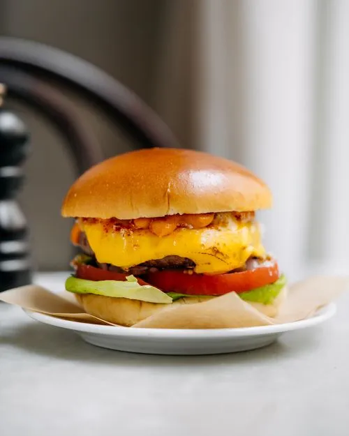For those who prefer no meat between a bun, we have a super tasty alternative, a delicious veggie burger with a combination of Korean spiced mayonnaise, a fresh pickle mix and finely chopped pointed cabbage.