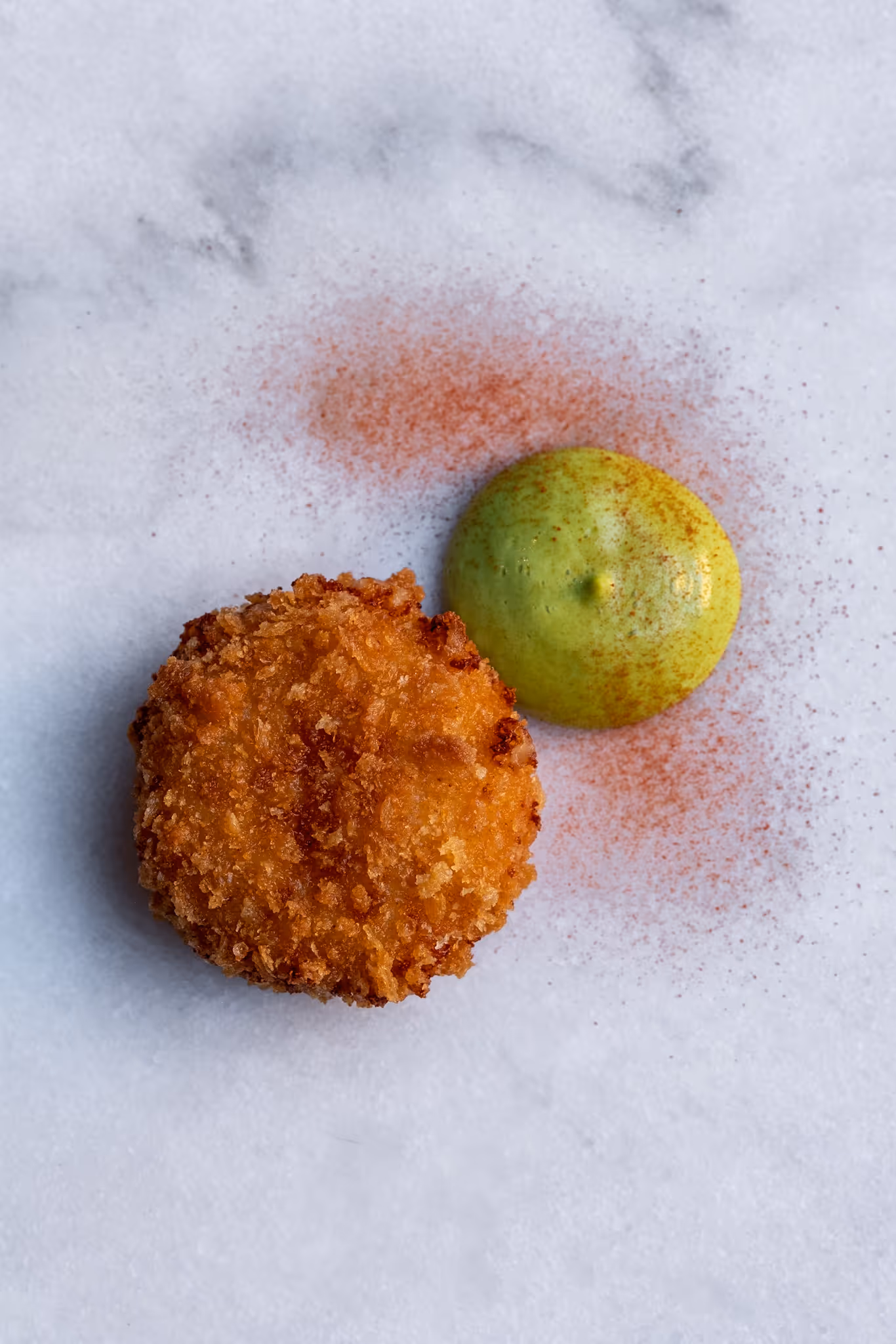 Our absolute classic, the shrimp croquette! This croquette is made to Sergio's recipe. Shrimp is also called the "caviar from the North Sea," because of its exclusivity and exceptional taste.